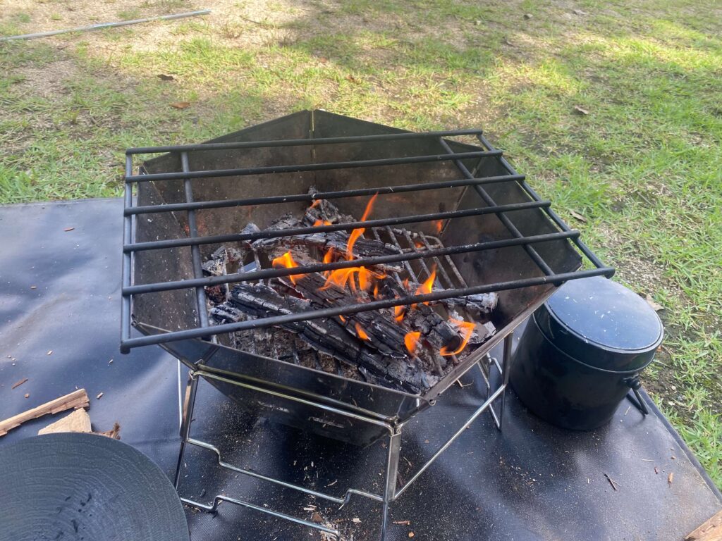 焚き火用に、炭を使った調理用にフレキシブルに活躍してくれています。