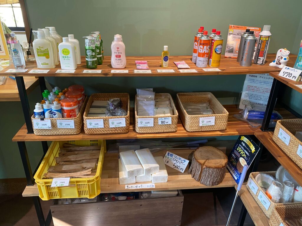 ➣薪、ガスボンベ(CB缶)、お酒、カップ麺、ゴミの有料処分有り。自動販売機あり。