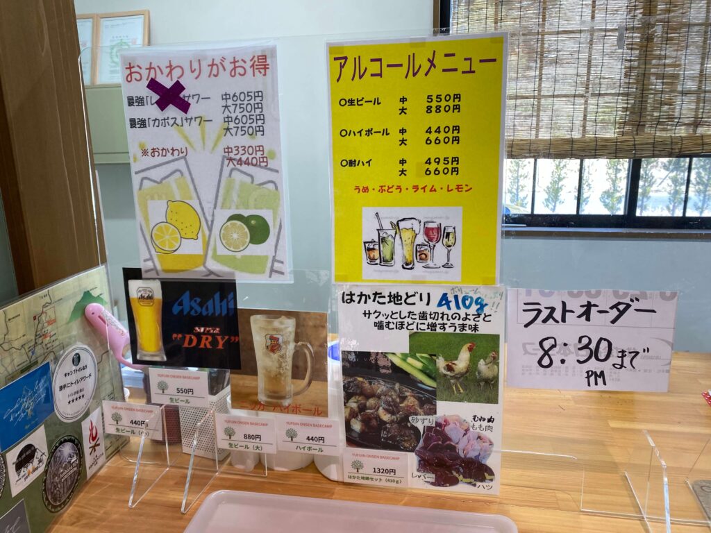 受付では生ビールやハイボール、レモンサワーなどアルコールの販売もしています。お風呂上がりにデッキに座ってお風呂上がりを楽しむことができます。