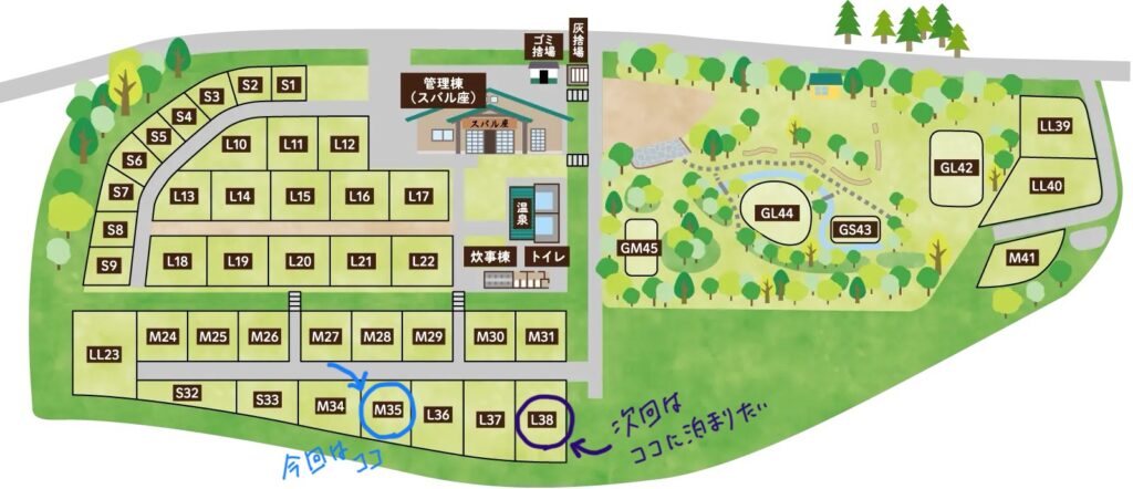 今回利用したサイトはM35で、中位の広さのサイトになります。