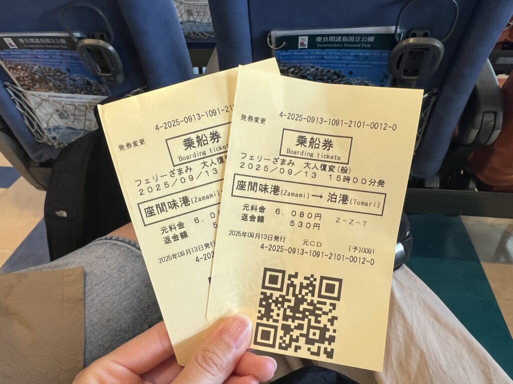往復で高速船のチケットを取っていたのですが、帰りはフェリーの方が時間の都合が良かったのでフェリーに変更しました。チケット売り場で高速船のチケットとフェリーのチケットを交換してもらいます。キャンセル料を引かれるのですがフェリーの方が料金が安いため少しお金が戻ってきました。必ずチケットは往復で取っておいた方が良いです。